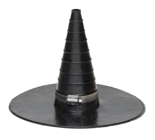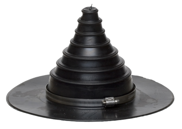 Pre-fabricated pipe boot with a QuickSeam tape laminated to the bottom of its flange. Specifically designed for flashing rigid round penetrations of 25 mm to 152 mm.